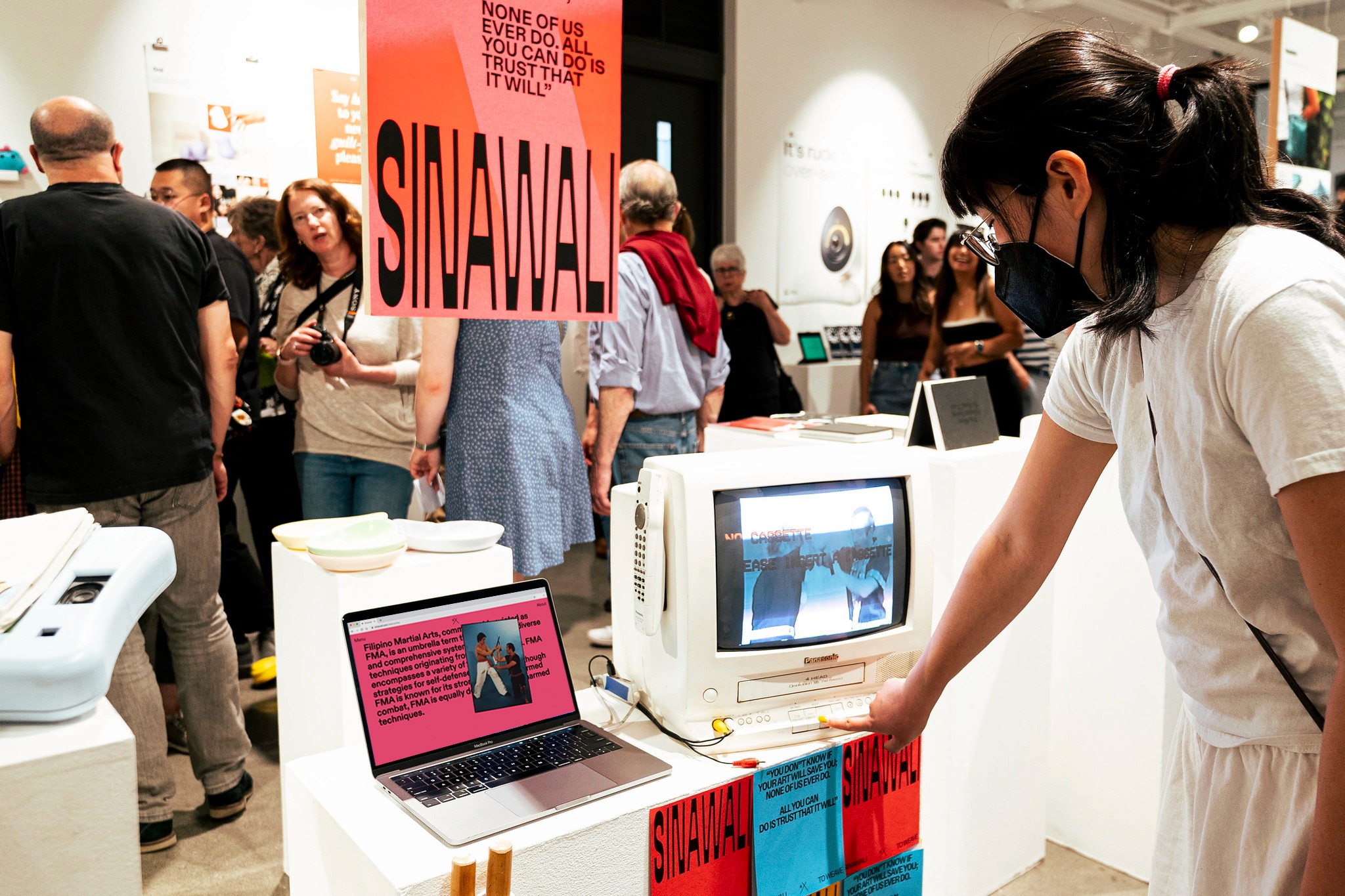 Sinawali was presented amongst my graduating peers in the UW Design Show 2024 exhibition. The website was displayed alongside the posters, CRT TV, and eskrima sticks for participative use. I am thankful to have been able to display my work alongside all of the my classmates' wonderful projects, and am even more thankful to graduate with such passionate and inspired designers. Also, thank you to Farrel Sudrajat for the fantastic photos of the exhibit!