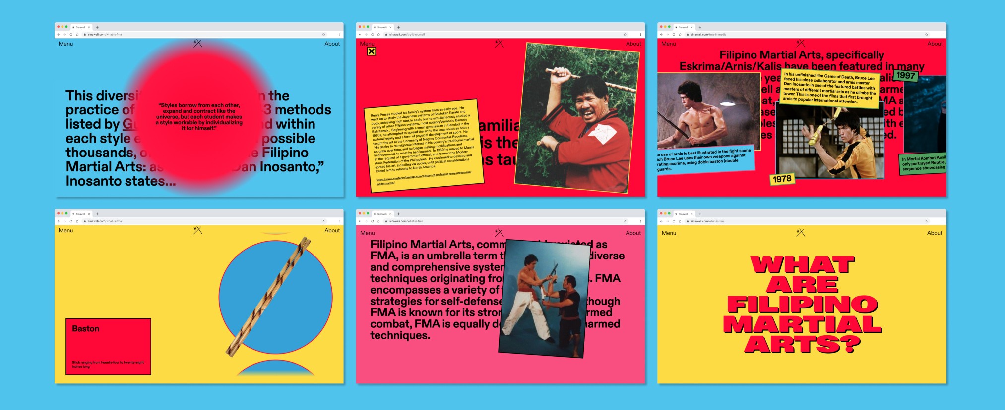 Sinawali is a web based experience that looks into the history and impact of Filipino Martial Arts. For my Bachelor of Design capstone project, I wanted to dedicate my final quarter to a subject deeply connected to my identity, culture, and childhood, leading to my deep dive into Filipino Martial Arts.